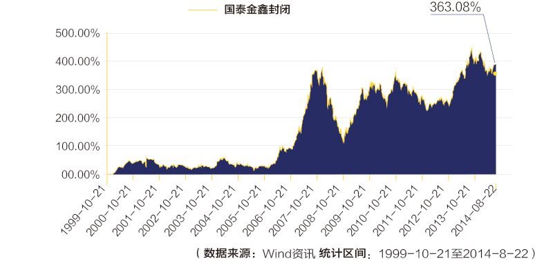 从1999年10月21日成立至今,国泰金鑫封闭累计净值3.2917元,成立以来累计净值增长率363.08%,过去三年净值增长22.97%,同期同类10只基金排名第1。(数据来源:银河证券基金研究中心,数据截至2014-8-22)